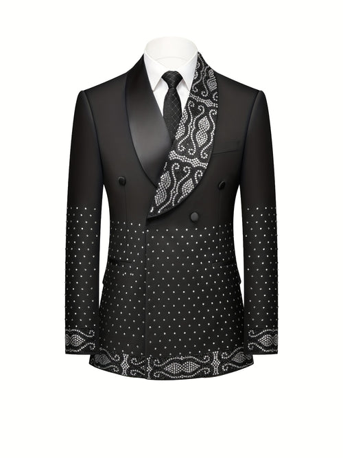 Men's 3pcs Slim-Fit Tailored Tuxedo Set with Golden Embellished & Vest - Black Wedding, Prom, Party Suit Jacket, Pants & Matching Blazer Outfit (No Alterations Required), Suits For Men, Wedding Suits For Men, Black Suit, Mens Clothes, Christmas Suit, Roya